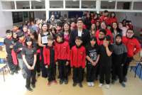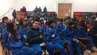 La soprano magallánica, que se integrará a un coro profesional en Alemania en 2026, interpretó extractos y explicó la disciplina a estudiantes de enseñanza básica.