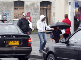 Nublado con lluvia. Viento noroeste de 60 km/hr.