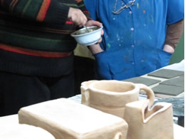 Apoyadas por el programa Creando Chile en Mi Barrio, dueñas de casa se perfeccionaron en la confección de piezas en arcilla. La próxima semana realizarán una exposición de sus trabajos. Apelando a la existencia de materia prima de fácil acceso y tras la búsqueda de una identidad creativa local, vecinas de Río Seco pusieron manos a la obra y comenzaron a moldear una iniciativa innovadora en el sector: El trabajo en greda.Apoyadas por el Consejo de la Cultura y las Artes, a través del programa Creando Chile en Mi Barrio, una decena de dueñas de casa iniciaron una fase de perfeccionamiento en el oficio y arte de la cerámica.