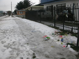 Una de las responsabilidades que tiene la comunidad magallánica es mantener libre de nieve y escarcha la vereda al exterior de sus domicilios y negocios.