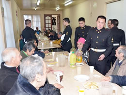Como parte de las actividades que deben realizar todos los conscriptos de la Armada de Chile, los soldados infantes de marina de la III Zona Naval, compartieron una once con los adultos mayores en el Hogar de Cristo de Punta Arenas. Esta iniciativa fue bien recibida por los abuelitos quienes dieron la bienvenida a los marinos con gran emoción, y agradecieron enormemente el aprecio que representó su visita.La visita se caracterizó por extensas conversaciones y gran camaradería, donde el personal naval conscripto compartió toda una tarde con los adultos mayores.