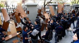 Así es como, en el Liceo Lastarria los alumnos procedieron a bloquear los accesos con sillas y mesas, lo que provocó una tensa situación, cuando Carabineros intentaron detener a los estudiantes con el carro lanzaaguas.