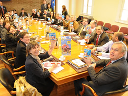 Con la entrega de alcancías al Intendente, Arturo Storaker y cada uno de los integrantes del gabinete ampliado del Gobierno Regional (GORE) se dio por finalizado oficialmente el reparto de los tradicionales tarros de contribución para las “Jornadas por la Rehabilitación en Magallanes”. A primera hora, los seremis y directores de servicios recibieron las alcancías de manos de los organizadores de la XXIV versión de las Jornadas. Según explicó el Presidente del Club de Leones “Cruz del Sur”, Germán Vidal Sharp “alrededor de 5 mil tarros de cooperación fueron repartidos en toda la región, con el objetivo de alcanzar la meta de los $340 millones, para financiar los gastos operativos de los tres centros que existen en Magallanes” afirmó Vidal.