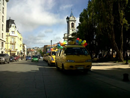 Mañana se conmemora el día del transportista escolar, por lo que hoy lo celebran realizando un recorrido por la ciudad a los niños de distintos establecimientos educacionales.