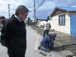 Una importante visita en terreno realizo la primera autoridad comunal, Fernando Paredes Mansilla, para ver el estado de avance de la ejecución del proyecto de veredas de la calle Carlos Condell, perteneciente a la población Chile Nuevo. El proyecto de cambios de veredas de la calle Carlos Condell, obedecía a una necesidad de los propios vecinos del sector, es por esto, que el municipio de Natales, rápidamente comenzó a preparar un proyecto a través de la línea PMU (plan mejoramiento urbano), con un monto superior a los 28 millones de pesos.El Alcalde Paredes, se mostró satisfecho por los resultados obtenidos en dicho proyecto, indicando que la ejecución de las obras se realizan con personas del plan de empleo; “…Quisiera destacar que esta obra está hecha por un equipo de personas pertenecientes al plan de empleo, y hemos apreciado el gran profesionalismo de los trabajos que se han hecho, y no tenemos nada que envidiarla a una empresa común, siento orgullo por la entrega y la capacidad que han tenido la gente del plan de empleo, son 20 personas que se han especializado en la construcción de veredas, y creemos que aquí queda planteada la idea para continuar presentando otros proyectos y generar la segunda parte de esta obra…”, destacó el edil.