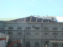 Producto de los fuertes vientos se desprendió la techumbre del Museo Margorino Borgatello, ubicado en avenida Bulnes entre Maipú y Sarmientos, por lo que habrían caído restos de este a los vehículos, personal de Carabineros corto el tránsito en dicha avenida.
