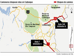 En Puerto Aysén, en tanto, desde el pasado lunes cerca de 30 personas continúan impidiendo el acceso por la Ruta 240 que conduce al sector de Chacubuco.