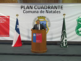 En tanto, el General de Planificación y Desarrollo de Carabineros de Chile, Claudio Espinoza, fue el encargado de oficializar que la comuna de Natales ya cuenta con la aplicación del plan cuadrante, realizando una breve exposición en el que explicó cuales serían algunos de los beneficios que tendrá este plan cuadrante para la comuna, entre lo que se destaca, 43 nuevos efectivos de Carabineros, 8 vehículos policiales, mejoramiento de infraestructura tecnológica, y el mejoramiento de comisaria y retenes de la comuna, por un monto superior a los 3 mil millones de pesos.
