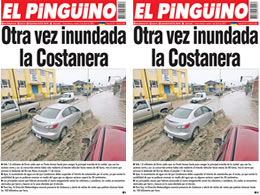 Arenas bastó para anegar la principal avenida de la ciudad, que une los sectores norte y sur. La concurrida arteria había sido reabierta al tránsito vehicular hacía menos de 48 horas, tras el cierre que provocó el desborde del Río Las Minas el pasado 11 de marzo. Sólo 1,8 milímetro de lluvia caída ayer en Punta Ayer, la acumulación de agua era tal que Carabineros debió suspender el tránsito de automóviles por el sector, ya que existía la posibilidad de que no pudieran avanzar en medio del agua que en algunos sectores superó los 30 centímetros.