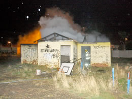 Nuevamente desconocidos incendiaron lo que queda de los camarines de la cancha del barrio 18 de septiembre, esta vez cerca de las 20 horas de ayer quemaron neumáticos en el interior.