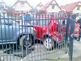 Una violenta colisión se registró en la intersección de calles Claudio Bustos con Mardones pasadas las 17 horas de ayer. El hecho se registró cuando un vehículo marca Toyota Yaris circulaba por Mardones y al llegar a dicha esquina viró sorpresivamente, impactando a un jeep Dahiatsu Terios lo que provocó que este último terminara chocando contra un vehículo marca Renault que se encontraba estacionado en el domicilio ubicado en Mardones Nº 0825. Tras el accidente el conductor del jepp Daihatsu resultó lesionado, debiendo ser llevado por una ambulancia del SAMU hasta el Hospital Clínico de Magallanes.