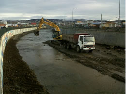 La municipalidad destina recursos materiales, económicos y humanos importantes para la limpieza de la cuenca baja del afluente. Funcionarios y maquinarias de la dirección de operaciones de la Municipalidad de Punta Arenas se encuentran trabajando en el despeje de la cuenca baja del Río de las Minas, los trabajos de limpieza se centran en el tramo comprendido entre las calles Chiloé e Ignacio Zenteno. Sergio Becerra, director de operaciones del municipio, señaló que se han retirado 150 camionadas de material desde la bóveda del Río de las Minas, ripio que se encuentra depositado en las instalaciones del ex Asmar para ser seleccionado y destinado a las calles no asfaltadas de la comuna y que requieren mantención.