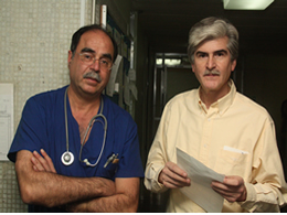 La primera atención la recibió del médico de turno, Jorge Bardisa, quien lo envió al Servicio de Rayos y luego solicitó el apoyo del traumatólogo Sergio Mac Lean (ambos en la foto). Tras revisar las placas, el cirujano dijo que “afortunadamente la lesión es de partes blandas. No hay compromiso de los huesos, pero sí de los tendones”. Por eso, posteriormente Mac Lean pidió que el paciente fuera llevado a pabellón donde lo sometió a un aseo quirúrgico, tras lo cual quedó internado en recuperación.