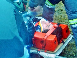“En las primeras maniobras de evaluación indicaba que existía un TEC en evolución. El helicóptero de la FACh se desplazó hasta ese lugar para su traslado. En el lugar el paciente se encontraba perdido en tiempo, espacio y sin orientación, con posible fractura de clavícula, costales y hombro izquierdo”.