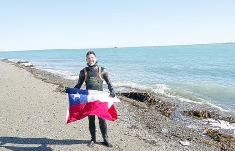 La jornada comenzó el viernes cerca de las 14 horas, cuando el cadete llegó hasta el sector de Punta Delgada, para lanzarse a las frías aguas y nadar hasta Bahía Azul.