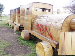 En la ciudad de Punta Arenas existen varios parques pero hay uno en particular que se encuentra en pésimo estado por culpa de los inadaptados de siempre que no saben en que emplear su tiempo libre y se dedican a garabatear las paredes y hacer destrozos. Tal es el caso del parque de los juguetes ubicado en avenida España con Hornillas, el mismo que fuera inaugurado hace menos de un año en una de la últimas actividades públicas del ex alcalde Juan Morano Cornejo. Los parques siempre han sido la debilidad de los más pequeños, pues pueden pasar horas trepados en los columpios, jugando en los balancines, corriendo de un lado para otro con sus amiguitos, disfrutando del aire puro de la ciudad y por supuesto de la compañía de sus padres.