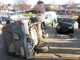 Pasado el mediodía de ayer, la central de alarmas del Cuerpo de Bomberos fue alertada de un accidente de tránsito ocurrido en el sector norte de la ciudad.El accidente se produjo en los momentos que un jeep Mitsubishi Pajero, patente UB 4117, conducido por Carolina Saldías, circulaba por calle Hornillas de cerro a playa.