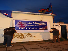 Ayer, quienes forman parte de la juventud de la falange en Punta Arenas, instalaron durante algunos minutos un cartel donde se oficializaba a la ex intendenta regional como candidata a diputada.Por nuestro derecho a elegir”. Así consignaba ayer en la tarde un afiche en el frontis de la sede de la Democracia Cristiana (DC). Con el logo de la falange, parte de la bandera de la Región de Magallanes y afirmando “Eugenia Mancilla, diputada 2009”, algunos integrantes de la Juventud de la Democracia Cristiana (JDC) instalaban el cartel en el que manifestaban su respaldo como candidata a diputada por el Distrito 60, a la ex intendente regional.