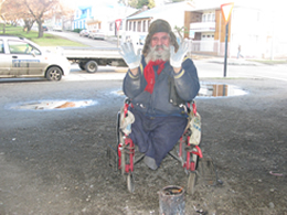 Todos los días, un anciano que vive en situación de calle debe pasar el frío puntarenense con un recipiente en el cual enciende fuego. En silla de ruedas y sin contar con sus piernas para movilizarse, Carlos pasa las noches en el Hogar de Cristo y durante las mañanas permanece a la intemperie para “aprovechar el clima que se vive acá”. Así lo relató a Pingüino Radio, asegurando que recorre el mundo hace 20 años viviendo de la misma forma en que en estos momentos lo hace en la capital regional y financia sus gastos vendiendo sus pertenencias, así como también algunos artículos reciclados que fabrica de forma artesanal.
