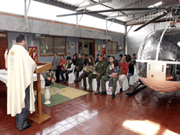 Cumpliendo con el recorrido a todos los cuarteles de la XII zona de Carabineros, la imagen de la Virgen del Carmen (patrona y generala de las Fuerzas Armadas) estuvo ayer en la mañana en el hangar de la aero policial de Punta Arenas, donde el capellán Lorenzo Torres ofició una misa. Todo esto en el marco de cumplirse 100 años del Obispado Castrense.