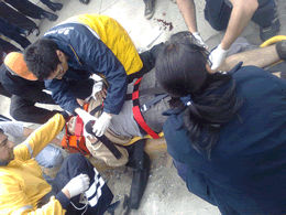 Un motociclista de unos 23 años identificado como Jorge Alvarado, resultó lesionado tras colisionar con dos camionetas en la intersección de la avenida José Martínez de Aldunate y la calle Chorrillos, en la población 18 de Septiembre. Al lugar, llegó personal del Samu que le entregó las primeras atenciones al paciente.